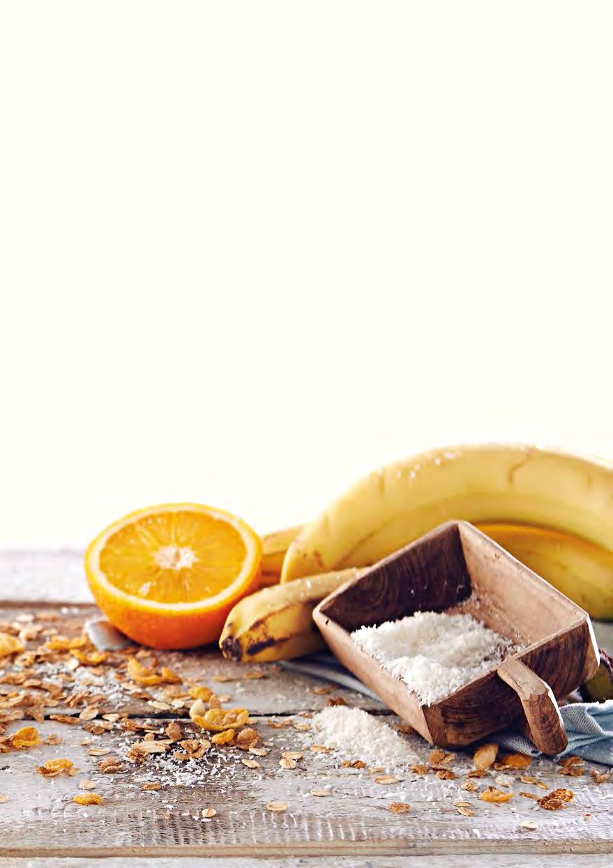 Frullato cremoso e aromatico con latte, cocco, banana, scorza d'arancia, muesli e il tocco del cacao. Delizioso e nutriente.